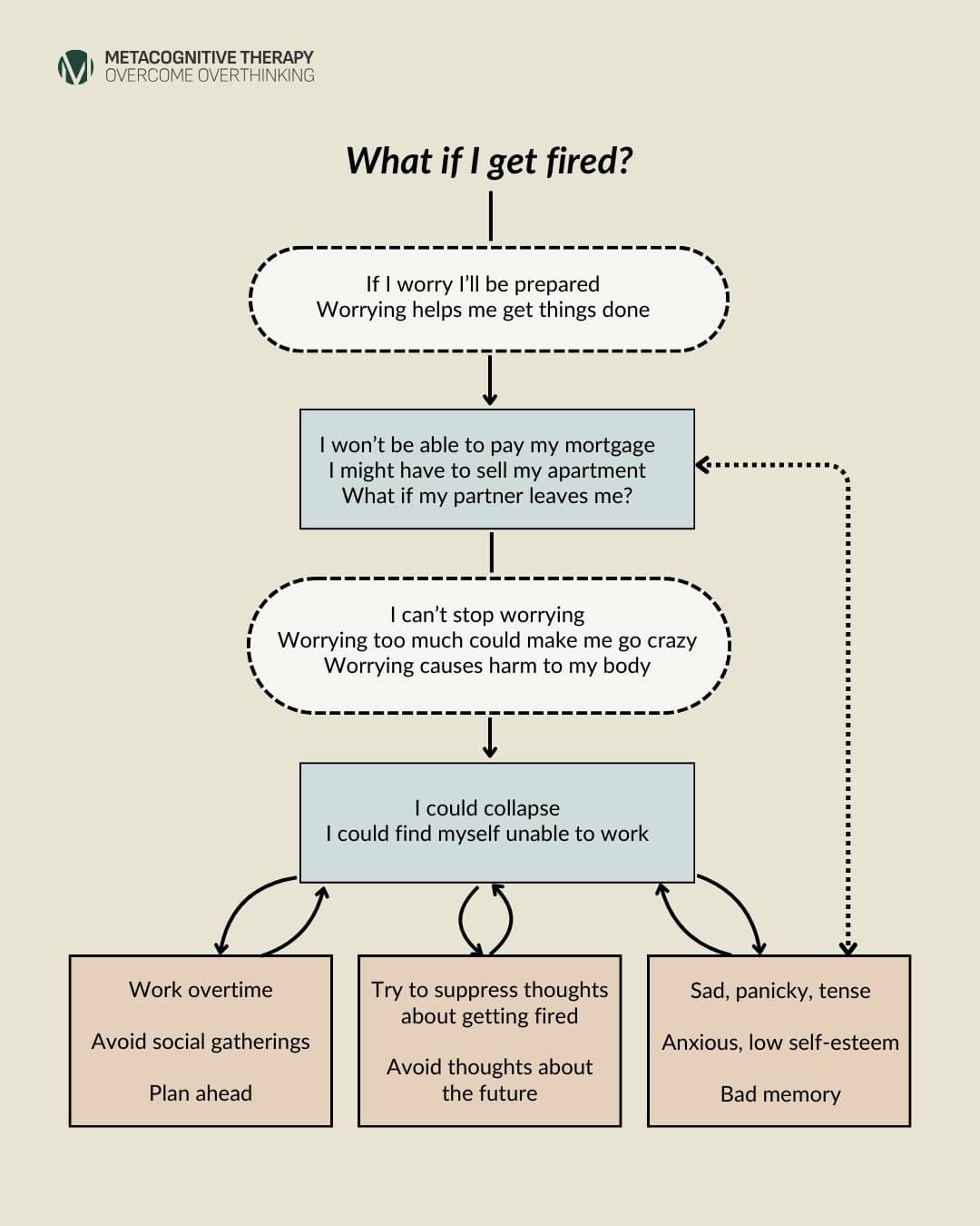 - If the person believes worry is uncontrollable or dangerous, they start worrying about the worry itself, scared that they’ll lose control or “go crazy”.